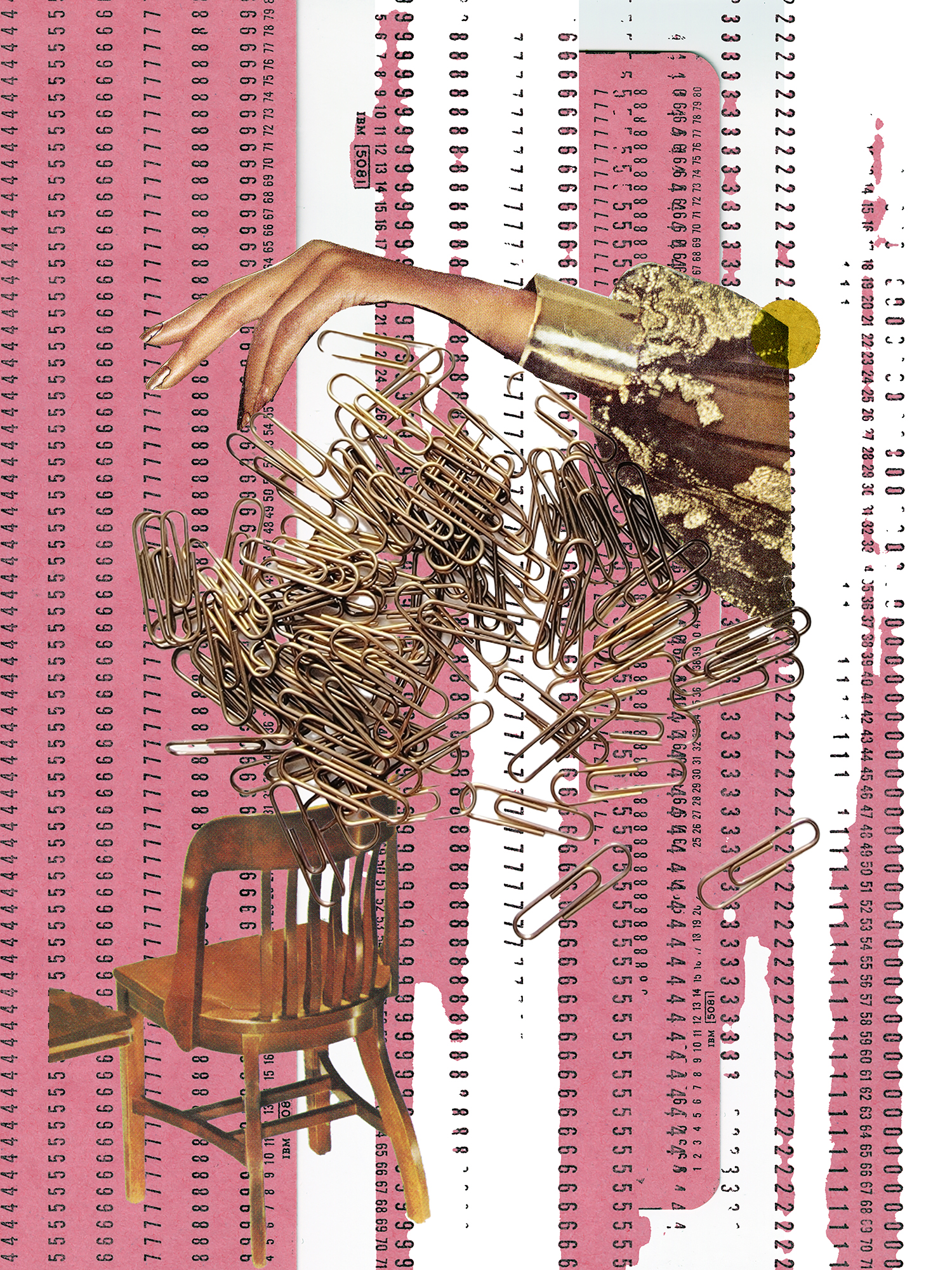 The Reinforcements (2023-ongoing) is a series of photo collages that visualizes the labor history of Black and immigrant women of color in America’s corporate workplace. This is the first showing of all the collages I’ve made in the last two years. In the middle of the gallery space is a special framing device for my digital collages, an installation of handmade ladders that featuring the “broken rung”, a concept which identifies a critical early-career obstacle for women that is even more pervasive than the glass ceiling.